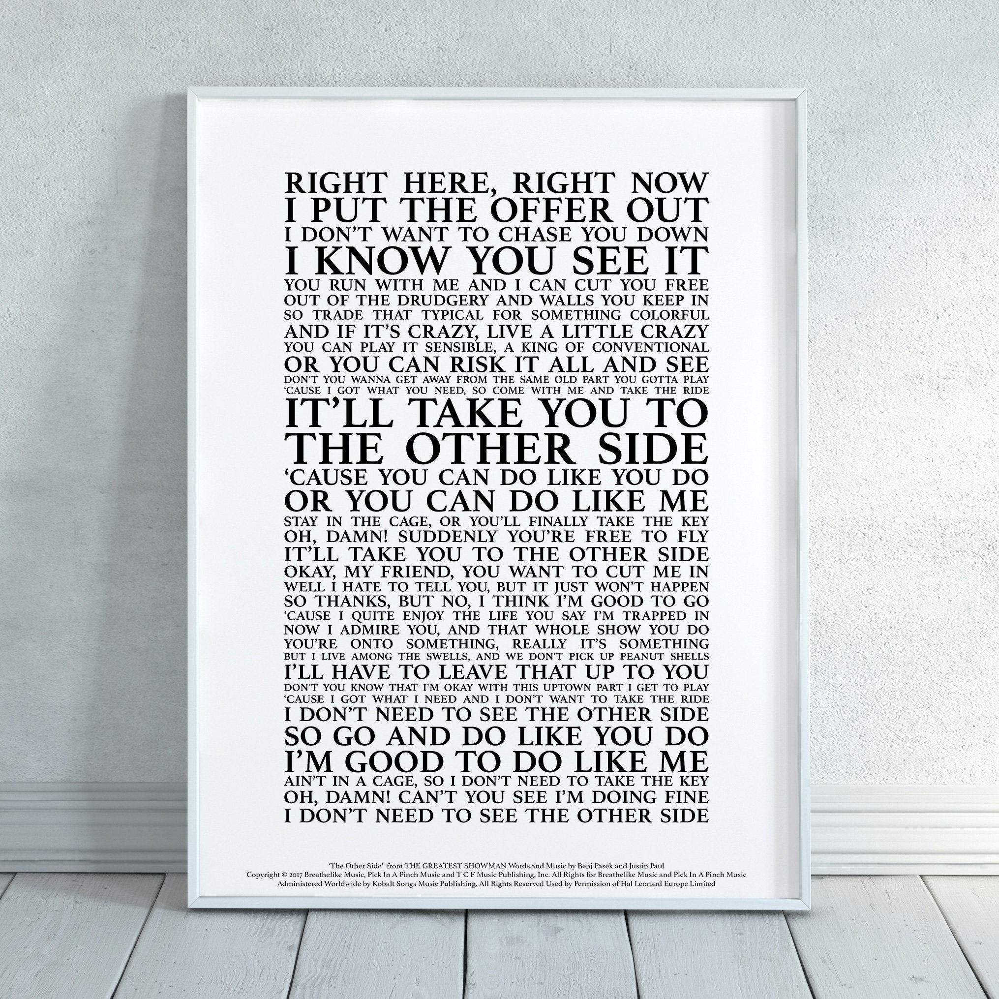 The Other Side The Greatest Showman Song Lyrics Print Etsy