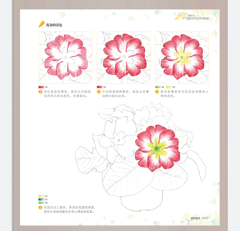 New Color Pencil Drawing Art Book 24 Kinds Of Flowers Super Detailed Colored Pencil Hand Painted Tutorial Book