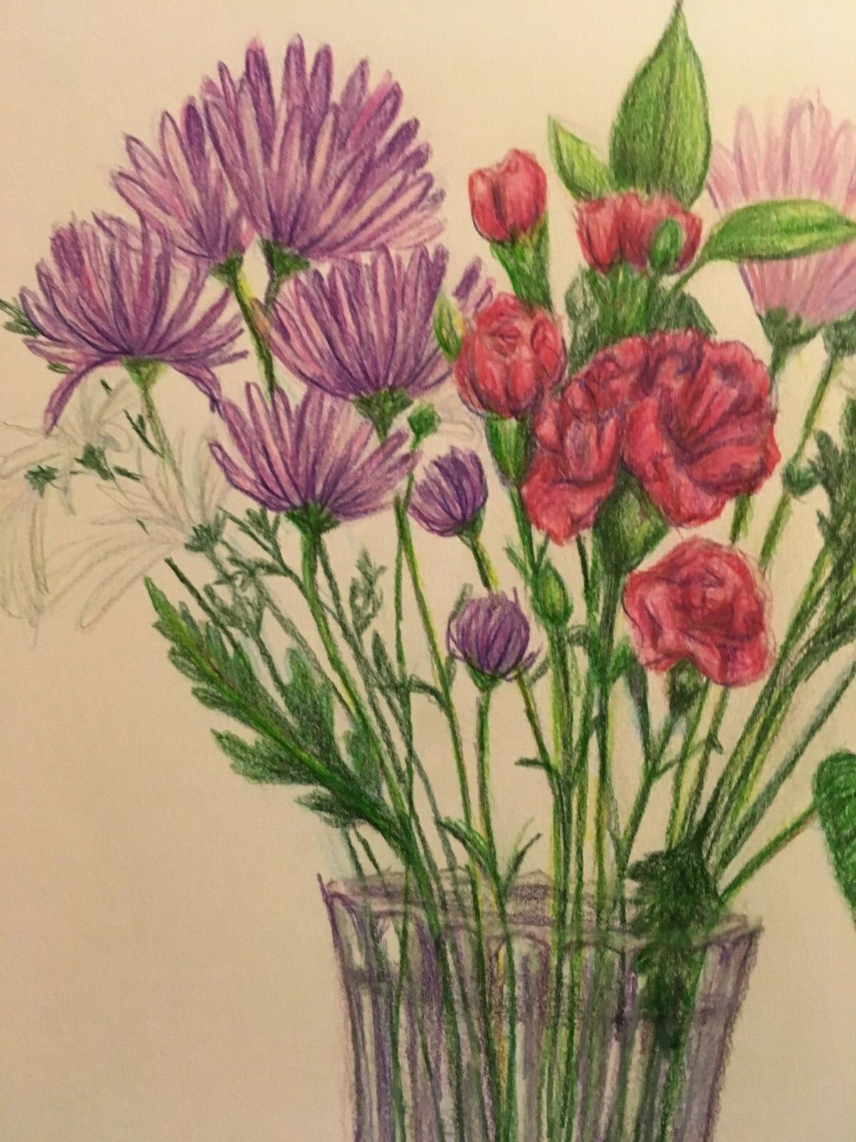 Colored Pencil Drawing Flower Bouquet Ebay